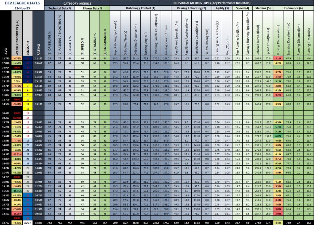 | Dylan G. | England U16 YFL F25 | 29 | 20 | 23 | 72 |