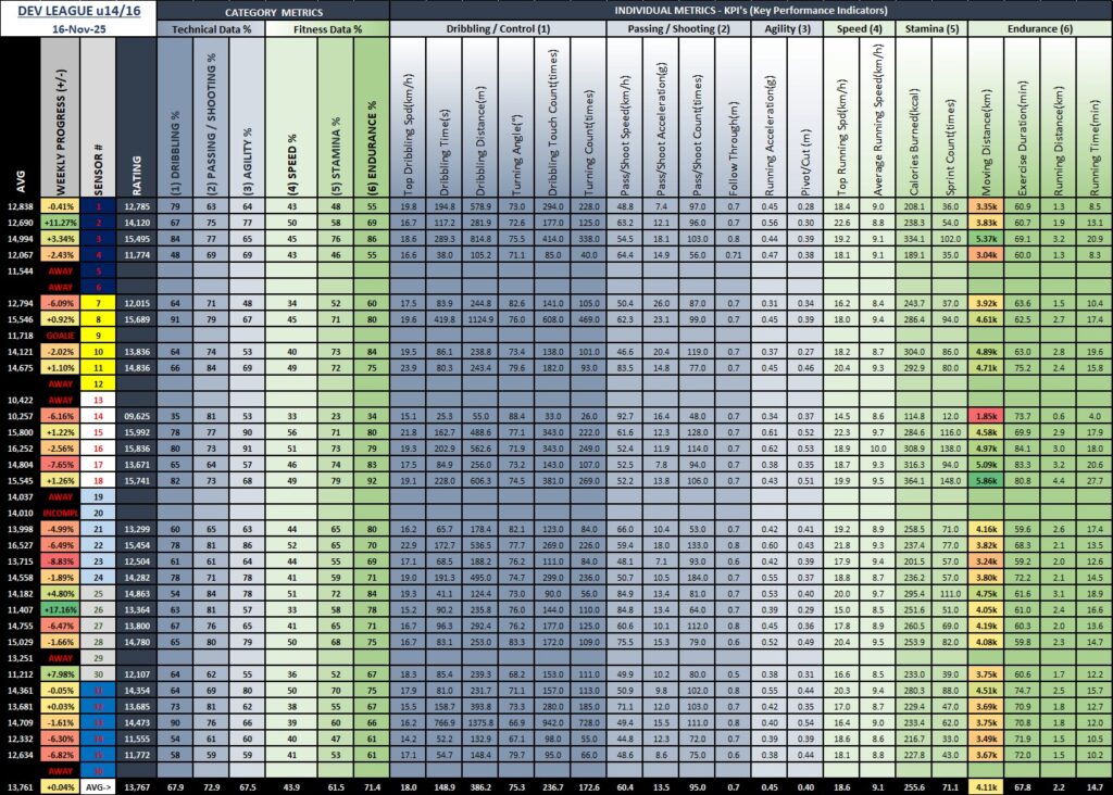 Fall 2025 U16 YFL Leaderboard