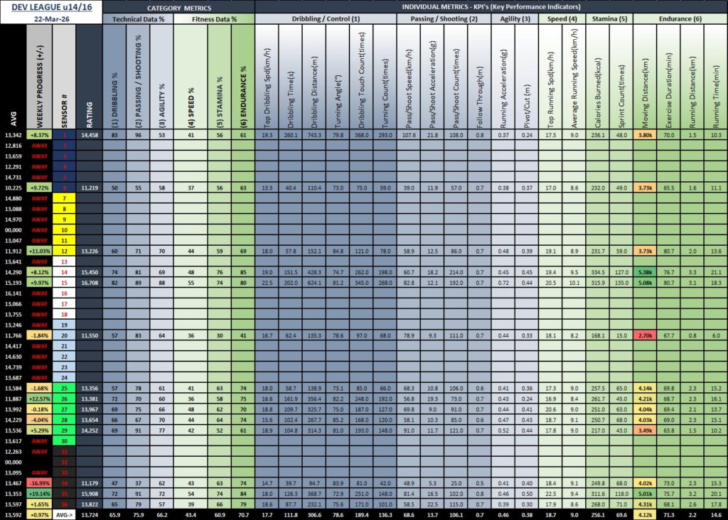 | Sebastian K. | Uruguay U14-16 YFL W26 | 8 | 10 | 22 | 40 |