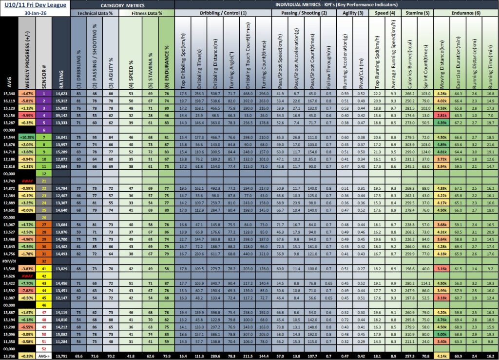 Winter 2026 U10/11 YFL Friday Leaderboard