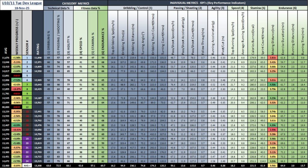 Fall 2025 U10/11 Tuesday YFL Leaderboard