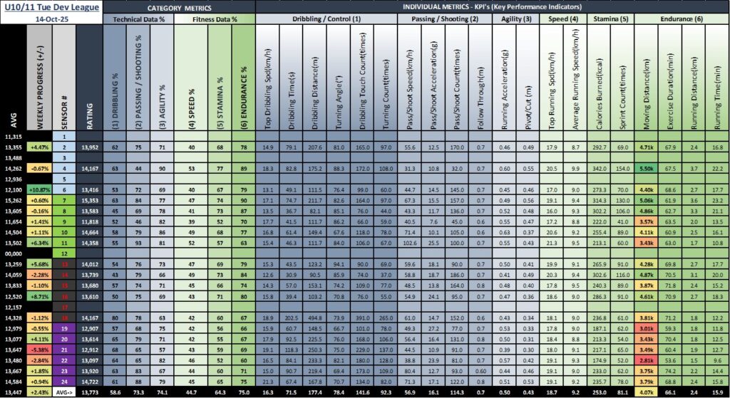 Fall 2025 U10/11 Tuesday YFL Leaderboard