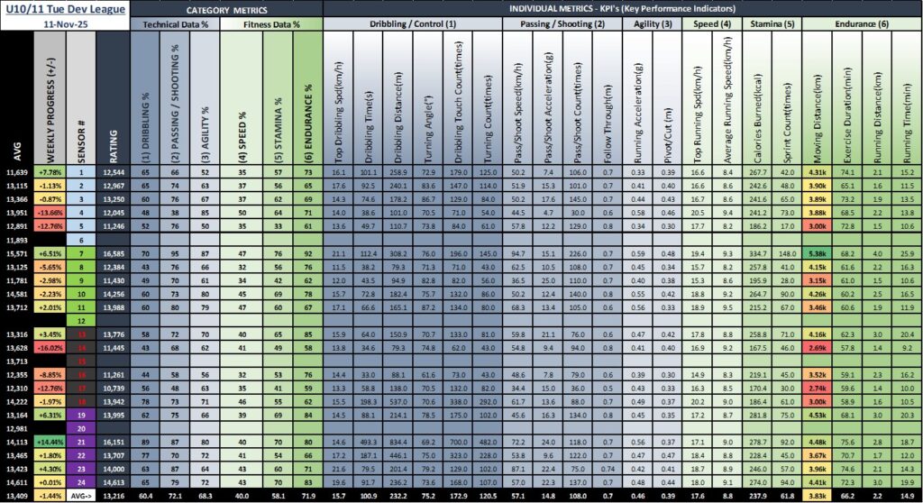 Fall 2025 U10/11 Tuesday YFL Leaderboard