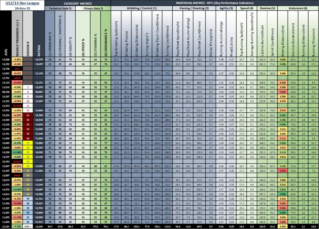 Fall 2025 U12/13 YFL Leaderboard