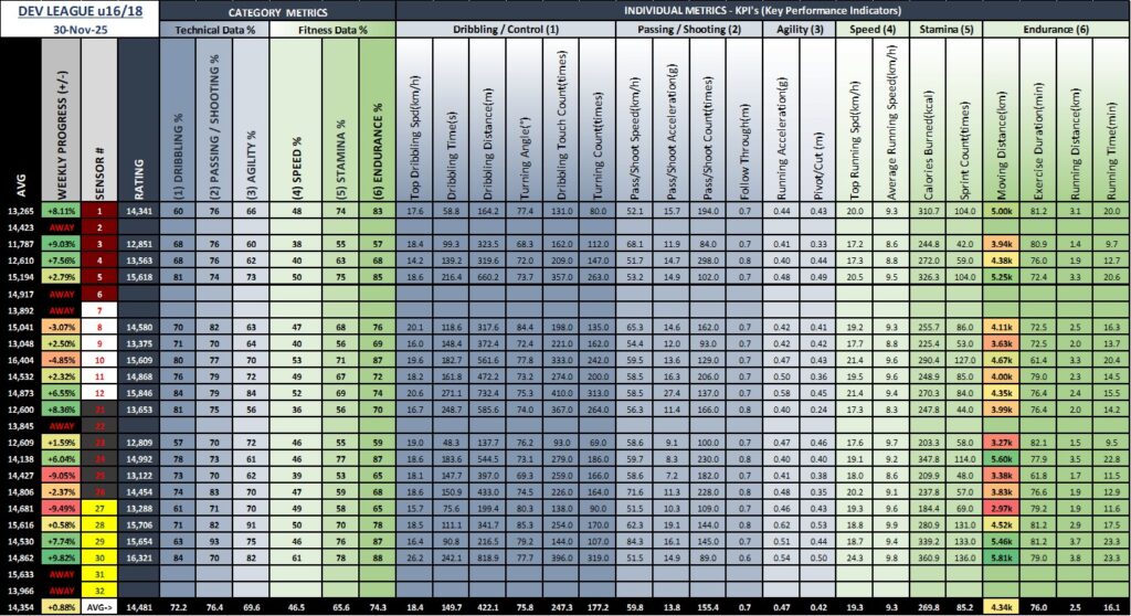 | Liam K. | England U18 YFL F25 | 19 | 27 | 17 | 63 |