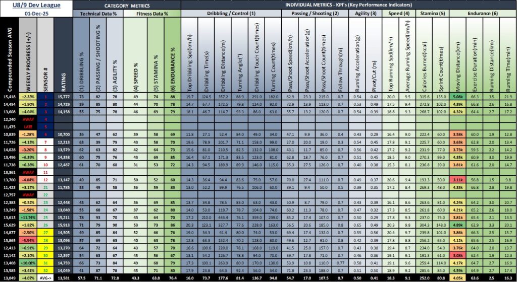Fall 2025 U8/9 YFL Leaderboard